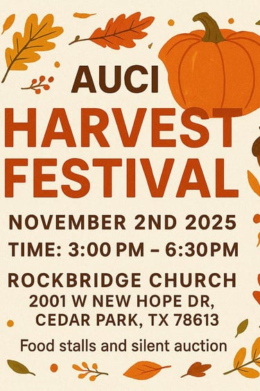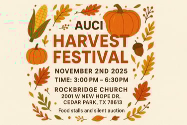 AUCI conducted its first ever Harvest Festival on Sunday, 11/2, at Rockbridge Church facilities immediately following the Worship service.