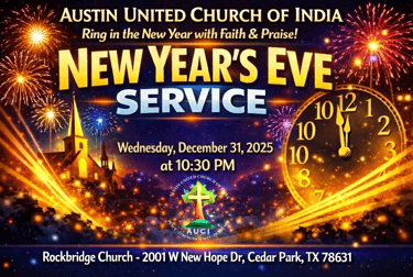 We extend invitation to all to come and be a part of the Watch Night Service at our church premises to usher in 2026 together. Come and be a part of this special service and be blessed. Note: Light refreshments will be served.